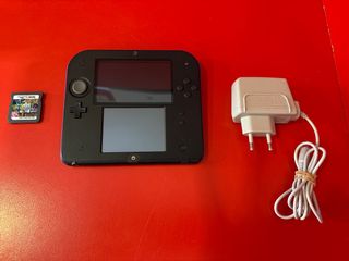 Consola Nintendo 2DS en color negro, en muy buen estado. Incluye cargador y más de 50 juegos - Consola Nintendo 2DS - Cargador - Juego (título visible en la imagen) Con un año de garantía