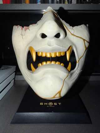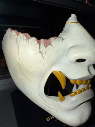 Máscara original de la edición coleccionista del juego Ghost of Yotei. Se rompió, está reparada por eso el precio.