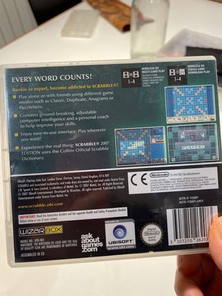 Juego Scrabble Interactive para Nintendo DS, edición 2007. OTROS ver en mi PERFIL ; - Spongebob: Atlantida(con caja) 10€ - My Sims (con caja) 12€ - Cats and Dogs 5€ - Tom y Jerry 7€ - Lego Película(con csja) 5€ - Turbo 5€ - Goldeneye 007 5€ - Princess Peach (es copia) 10€ - Scrabble(con caja) 10€ - English Training 5€ - Touchmaster con 30 juegos 15€ -CHEESMaster(con caja) 20€ - Mario & Sonic en los Juegos Olímpicos de Invierno (c caja)15€ - Super Mario 3D Land 7€ - Mario Party: Island Tour 7€