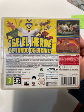 Videojuego Bob Esponja: El Héroe para Nintendo 3DS. - Plataformas: Nintendo 3DS - Idioma: Español OTROS ver en mi PERFIL ; - Spongebob: Atlantida(con caja) 10€ - My Sims (con caja) 12€ - Cats and Dogs 5€ - Tom y Jerry 7€ - Lego Película(con csja) 5€ - Turbo 5€ - Goldeneye 007 5€ - Princess Peach (es copia) 10€ - Scrabble(con caja) 10€ - English Training 5€ - Touchmaster con 30 juegos 15€ -CHEESMaster(con caja) 15€ - Mario & Sonic en los Juegos Olímpicos de Invierno (c caja)15€ - Super Mario 3D Land 7€ - Mario Party: Island Tour 7€