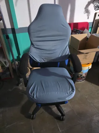 Silla de estilo gaming con funda protectora gris. - Base con ruedas. - Reposabrazos acolchados. - Diseño ergonómico.