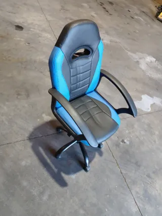 Silla ergonómica de estilo gamer, ideal para los más jóvenes. Su diseño combina colores vibrantes con negro. - Tapicería en polipiel. - Base con ruedas para fácil movilidad. - Respaldo con diseño deportivo.