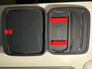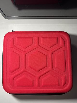 Funda de viaje para Nintendo Switch en color rojo. Su diseño exterior presenta un patrón geométrico con forma de hexágono. - Color: Rojo - Diseño: Patrón hexagonal