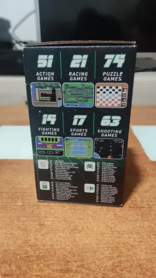 Consola de videojuegos con conexión inalámbrica 2.4G y 2 mandos de pilas. - Diseño moderno y elegante. - Mando ergonómico para largas sesiones de juego. - Compatible con juegos de arcade y alta sensibilidad. - Incluye consola y mando.