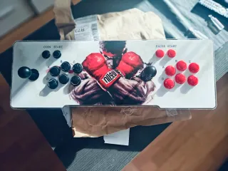Consola de juegos arcade Pandora Box 10 con diseño llamativo. - Dos joysticks. - Múltiples botones de control. - Puertos de conexión en la parte trasera. - Mas de 4.000 juegos Muy poco uso. Gran estado del producto