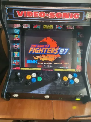 Máquina arcade estilo bartop con diseño inspirado en The King of Fighters '97. - Panel de control con joysticks y botones. - Gráficos temáticos de videojuegos. - Diseño compacto ideal para espacios reducidos.mas información por privado negociable