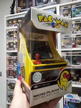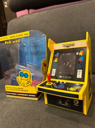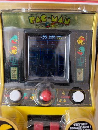 Mini consola arcade portátil con el clásico juego Pac-Man. Un diseño compacto y divertido para revivir la nostalgia. - Pantalla a todo color. - Joystick y botones para jugar. - Incluye el juego Pac-Man. -En su caja original con accesorios. -Solo sacada de la caja para comprobar su funcionamiento. -Como nueva.