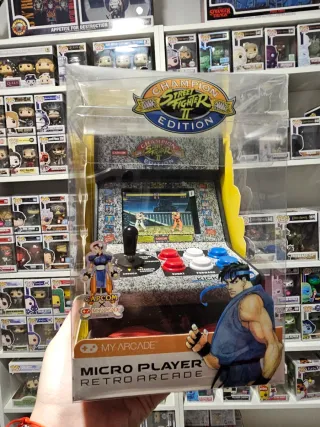 Mini consola arcade de Street Fighter II Champion Edition. Revive los clásicos de lucha. - Diseño compacto y portátil. - Incluye personajes icónicos como Ryu y Chun-Li. - Pantalla retroiluminada para una mejor visualización. -Caja original con accesorios. -Solo sacada de la caja para comprobar si funcionamiento. -Como nueva.