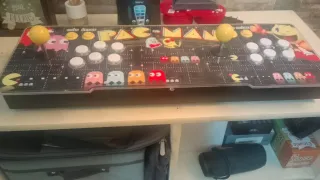 Consola arcade Pandora BOX 3D con temática de Pac-Man. Disfruta de una experiencia de juego retro. - Diseño clásico de Pac-Man y fantasmas. - Incluye joysticks y botones para dos jugadores.