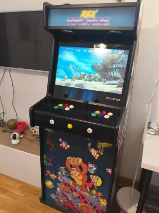 Se vende Máquina arcade con poco uso , está en perfectas condiciones, mejor venir a probarlo y verlo , tengo factura! con diseño personalizado. 163 de alto x60 de ancho y 60 de fondo - Pantalla de juego. - Controles de mando y botones. - Diseño lateral temático de videojuegos clásicos.