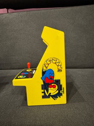 Revive la nostalgia con esta mini máquina arcade de Pac-Man. Perfecta para coleccionistas y aficionados. - Diseño compacto y portátil. - Decoración temática de Pac-Man. - Incluye botón TRY ME! para demostración.
