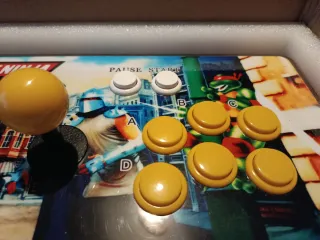 Consola arcade con diseño temático de Teenage Mutant Ninja Turtles. - Botones de acción y joystick. - Diseño gráfico de las Tortugas Ninja - Diseño descatalogado + 6000 j Incluye cableado y botón de repuesto Prácticamente nueva la compré por capricho y la verdad no he jugado casi nada Para recoger en Carmona no hago ningún tipo de envío.