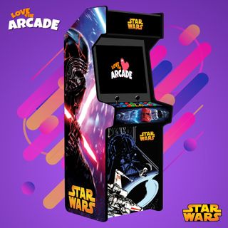 Máquina arcade temática de Star Wars, ideal para los amantes de los videojuegos retro. - Diseño inspirado en la saga. - Panel de control con botones y joystick.