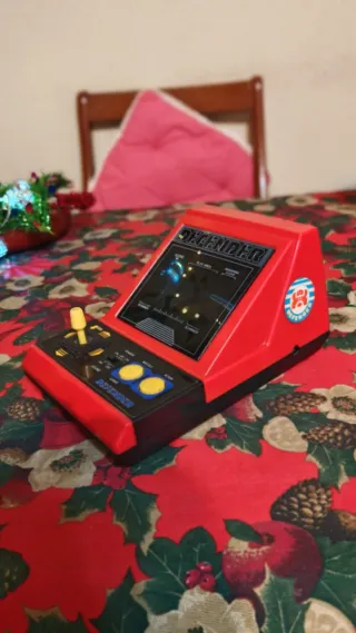 Pequeña máquina arcade de estilo retro, perfecta para coleccionistas o para añadir un toque nostálgico. - Diseño compacto y portátil. - Pantalla integrada. - Joystick y botones de control. - Funciona con pilas