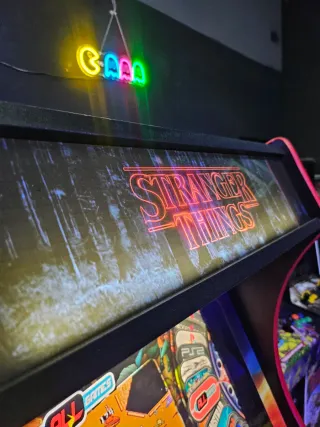 Máquina arcade temática de Stranger Things. Perfecta para los fans de la serie. - Diseño inspirado en la serie. - Pantalla con gráficos vibrantes. - Controles de alta calidad.