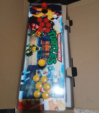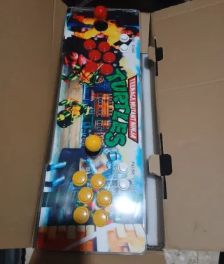 Consola de juegos arcade estilo Pandora Box 3D con diseño multicolor. -6100 juegos - Joystick y botones de control. - Gráficos temáticos de Teenage Mutant Ninja Turtles.