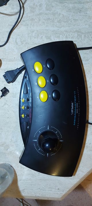 Mando arcade retro con 2650 juegos incorporados. Está prácticamente nuevo y en perfecto estado. - Incluye todos los cables necesarios para su conexión. - Diseño azul y negro, muy atractivo. - Dispone de dos joysticks y varios botones.