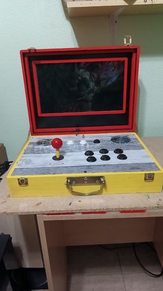 Preciosa maleta arcade retro, ideal para amantes de los videojuegos clásicos. Está en muy buen estado y lista para disfrutar.