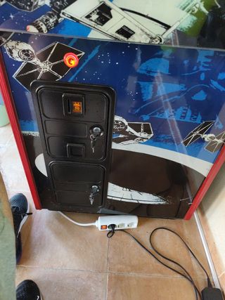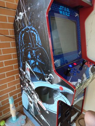 Preciosa máquina recreativa Atari Star Wars en estupendo estado. Se vende tal cual se ve en las fotos. - Incluye mueble y componentes electrónicos. - Diseño clásico con gráficos de Star Wars. - Perfecta para coleccionistas y amantes de los videojuegos retro. Mueble original restaurado con muchos juegos de consolas variadas.....funciona perfectamente.... La pantalla es de 21 pulgadas, lo que se ve negro...
