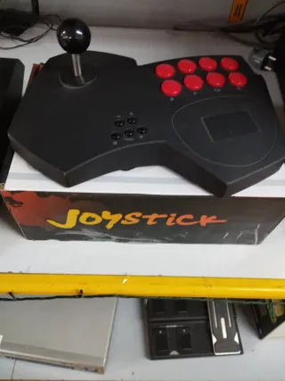 Joystick de estilo arcade en color negro, con una palanca y varios botones de acción en rojo. - Palanca de mando con bola negra. - Múltiples botones de acción rojos. - Diseño ergonómico.