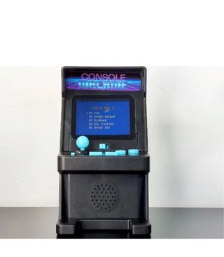 Mini consola de juegos retro. - Diseño inspirado en máquinas arcade. - Pantalla a color. - Joystick y botones de control.