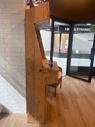 maquina arcade bien cuidada de madera muy bonita y se usaba en una barberia