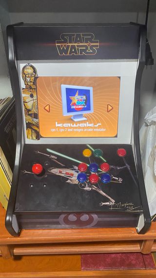 Vendo maquina recreativa arcade con estetica de Star Wars. Viene con mas de 50 juegos arcade de “SMASH T y mas de 80 juegos arcade de “CAPCOM VS SNK”. La vendo principalmente por que ya no la utilizo, pero esta en perfecto estado y funciona perfectamente. Viene con todos los cables necesarios y un mapa de los botones donde explica sus funciones. Cualquier pregunta podeis escribirme, contesto en menos de 3 horas.