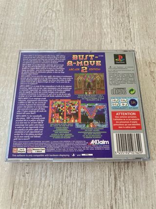 Juego de PlayStation 1, Bust-A-Move 2 Arcade Edition. Completo, PAL español. La caja tiene una pequeña grieta como se aprecia en la portada.