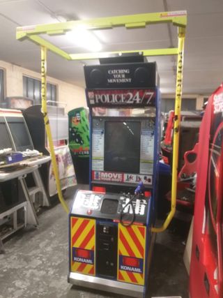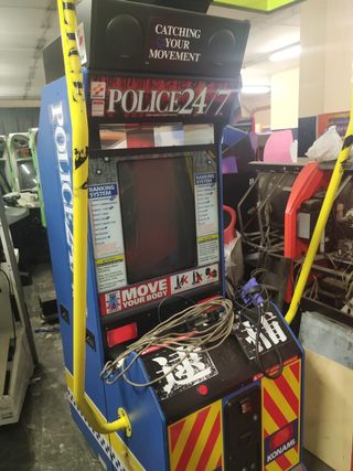 Recreativa Konami Police 24/7, en buen estado, con su alfombra, reconoce el movimiento. Falta chasis del monitor. Posibilidad de envío, preferiblemente recogida en persona. Arcade, Pinball.