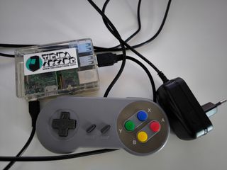 Consola arcade con un mando y HDMI para televisión. Todos los juegos clásicos de los 80 y 90, Neo Geo, Nintendo, Super Nintendo, etc...