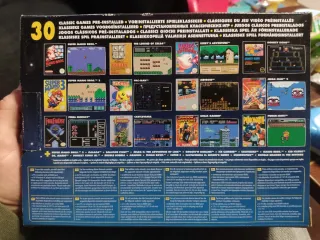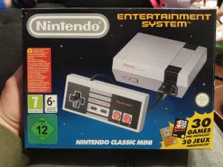 Consola Nintendo Entertainment System Classic Mini, NUNCA se ha abierto. - Incluye 30 juegos preinstalados. - Mando de control incluido. - Tiene un pequeño raspado en un borde, como se ve en las fotos, pero no ha pasado del embalaje interior.