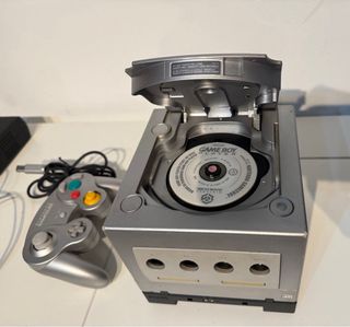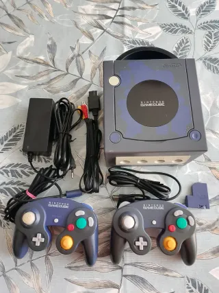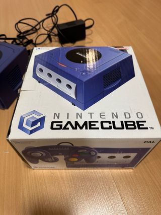 Nintendo GameCube en color morado con PicoBoot. Incluye dos mandos, cable de video, fuente de alimentación para 220V y una tarjeta SD de 64GB con varios programas instalados. La consola conserva el lector pero no es capaz de arrancar los juegos en disco. Le faltan las tapas de las ranuras de memoria. Tiene marcas, arañazos y se nota que en la tapa pusieron pegatinas pues hay trozos de un color diferente. Por lo demás está completa, no tiene golpes y funciona correctamente a través de la tarjeta de memoria. Si buscas una unidad impoluta, esta no es la tuya. Si buscas una GameCube para viciar sin clemencia, adelante.