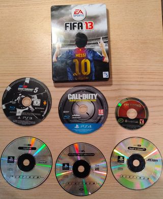 Vendo lote de 7 Juegos Variados. Todos sin caja excepto Steelbook Fifa 13 de Ps3 -3 de Ps1 con evidentes marcas de uso, pero funcionales. Bust a Move , Mickey's Wild Adventure y Rayman -Metroid Prime Gamecube -Gran Turismo 5 PS3 -Call of Duty Infinite Warfare PS4 -Fifa 13 Steelbook Barcelona Todos funcionales, pero debido al estado y a ser discos, no admito devoluciones.