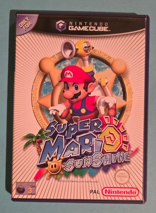 Videojuego Super Mario Sunshine para Nintendo GameCube. Incluye la caja original, el disco del juego, el manual de instrucciones y folletos. Con todo el material original de la época en su primera edición española - Juego de plataformas. - Para consola Nintendo GameCube.