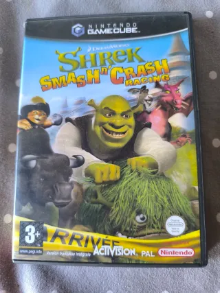 Videojuego Shrek Smash 'n' Crash Racing para Nintendo GameCube. No tiene manual Este juego no fue lanzado nunca en versión Pal España - Juego de carreras. - Carátula en francés.