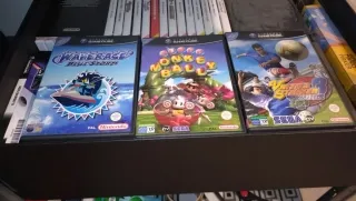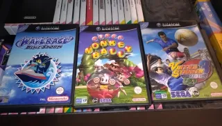 3 juegos nuevos y en perfecto estado, también los discos. Versiones españolas. Los compré precintados y los desprecinté solo para colección. - Super Monkey Ball - Wave Race Blue Storm - Virtua Striker 3