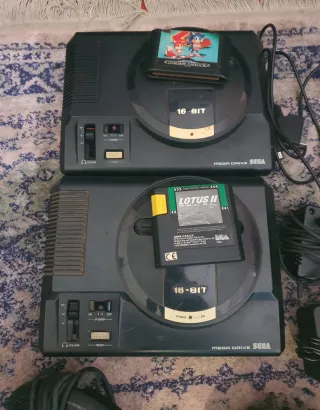 Se venden dos consolas Sega Mega Drive en color negro. Incluyen sus cables y mandos. - Dos consolas Sega Mega Drive. - Mandos de control. - Cables de conexión. Las consolas funcionan correctamente Hay una que le falta una tapa que va a un lateral mirar fotos y entrego solo un cable que da imagen a la TV para las 2 RECOGER EN GAVA