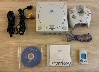 Completa. Con mando,con cable RGB, Visual memory con tapa, Dreamkey y CD de Demos La consola tiene un estado estetico increible Ha sido probada un buen rato y funciona perfectamente.