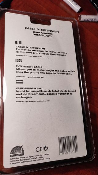 Cable para prolongar el cable del mando de la consola Sega Dreamcast. Nuevo en su embalaje, nunca se ha usado