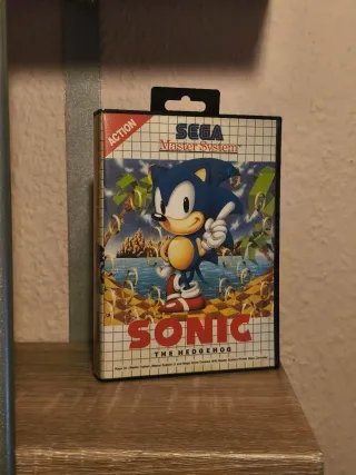 Videojuego clásico Sonic The Hedgehog para Sega Master System. - Juego de plataformas. - Caja original incluida. Tiene una pegatina en el juego, pero funciona.