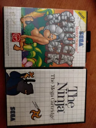 Dos juegos clásicos para Sega Master System: Chuck Rock y The Ninja. - Chuck Rock con ligera mancha en la zona superior, caja con plástico despegado atrás y ligera rotura. - The Ninja en buen estado. Envío o entrega en mano en Usera/Plaza Elíptica.
