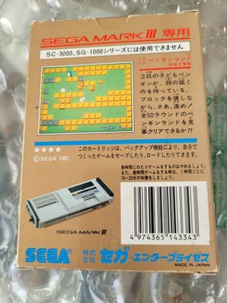 Vendo juego completo de Sega Mark III / Master System formato Japones: Doki Doki Penguin Land Uchuu Daibouken. Hago envíos a través de Wallapop. También se puede pagar por transferencia bancaria / bizum y paypal; el precio del envío por carta certificada sería de 6 euros.
