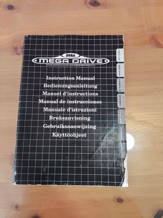 Libro de instrucciones original para la consola Sega Mega Drive. - Contiene información sobre las partes del juego. - Incluye detalles sobre la Sega Mega Drive. - Explica el funcionamiento de los sistemas. - Páginas 11, 12, 13, 17, 18, 19 y 20 visibles.