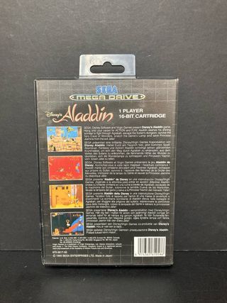 Cartucho de videojuego Aladdin para Sega Mega Drive. - Juego de plataformas. - Formato de 16-bit cartridge.