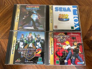 Lote de 4 videojuegos para SEGA Saturn de importación japonesa. - Fighters Megamix - Virtua Cop 2 - Virtua Cop - Sega Ages Memorial Selection Vol. 1 sin spine y caja agrietada