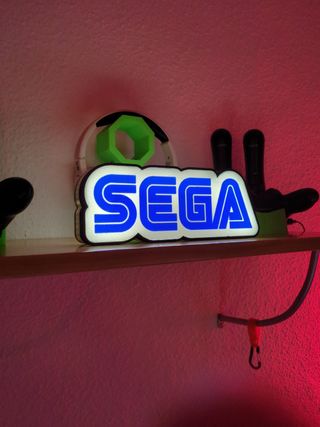 Cartel luminoso con el icónico logo de Sega. - Diseño moderno y llamativo. - Iluminación LED de bajo consumo.