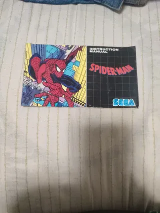 Manual de instrucciones para el videojuego Spiderman de SEGA Mega Drive. - Ilustraciones de Spiderman en acción. - Diseño clásico de la caja del juego.