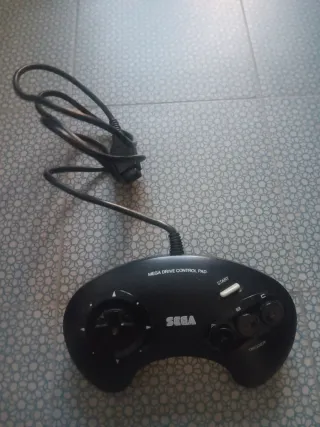 Mando de control para la consola Sega Mega Drive. Diseño clásico en color negro. Ref: 1260117052425
