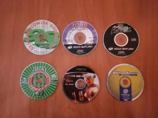 Lote de seis videojuegos para consolas Sega Saturn , Xbox y Dreamcast. - Worldwide Soccer 98 (Sega Saturn) - Tomb Raider (Sega Saturn) - International Superstar Soccer Pro 98 (Sega Saturn) - Worldwide Soccer 97 (Sega Saturn) - Dead or Alive 3 (Xbox) - Virtua Tennis (Dreamcast) - Sé encuentran en buen estado como se aprecian en las fotos. - Están provados y funcionan a la perfección,el único que no he podido probar es el virtua tennis ya que no dispongo de la consola.