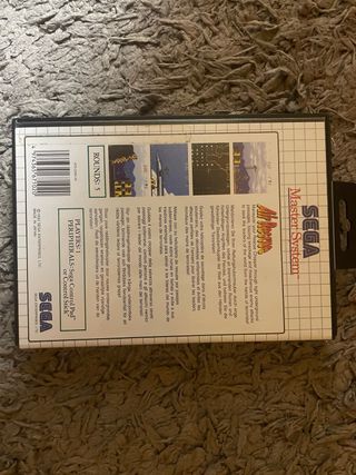 Este es un juego para la consola SEGA Master System. - Caja negra. - Incluye dos soportes blancos en la parte superior y dos ranuras en la parte inferior.